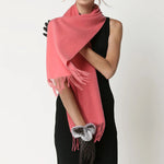 This exquisite scarf blends fine cashmere and Australian wool for exceptional softness and warmth. The delicate pink tone adds a touch of colour and refinement to any outfit, while the premium blend provides gentle comfort that becomes even softer with wear. Perfect for adding feminine elegance to winter wardrobes, this versatile scarf transitions seamlessly from casual to dressy occasions.