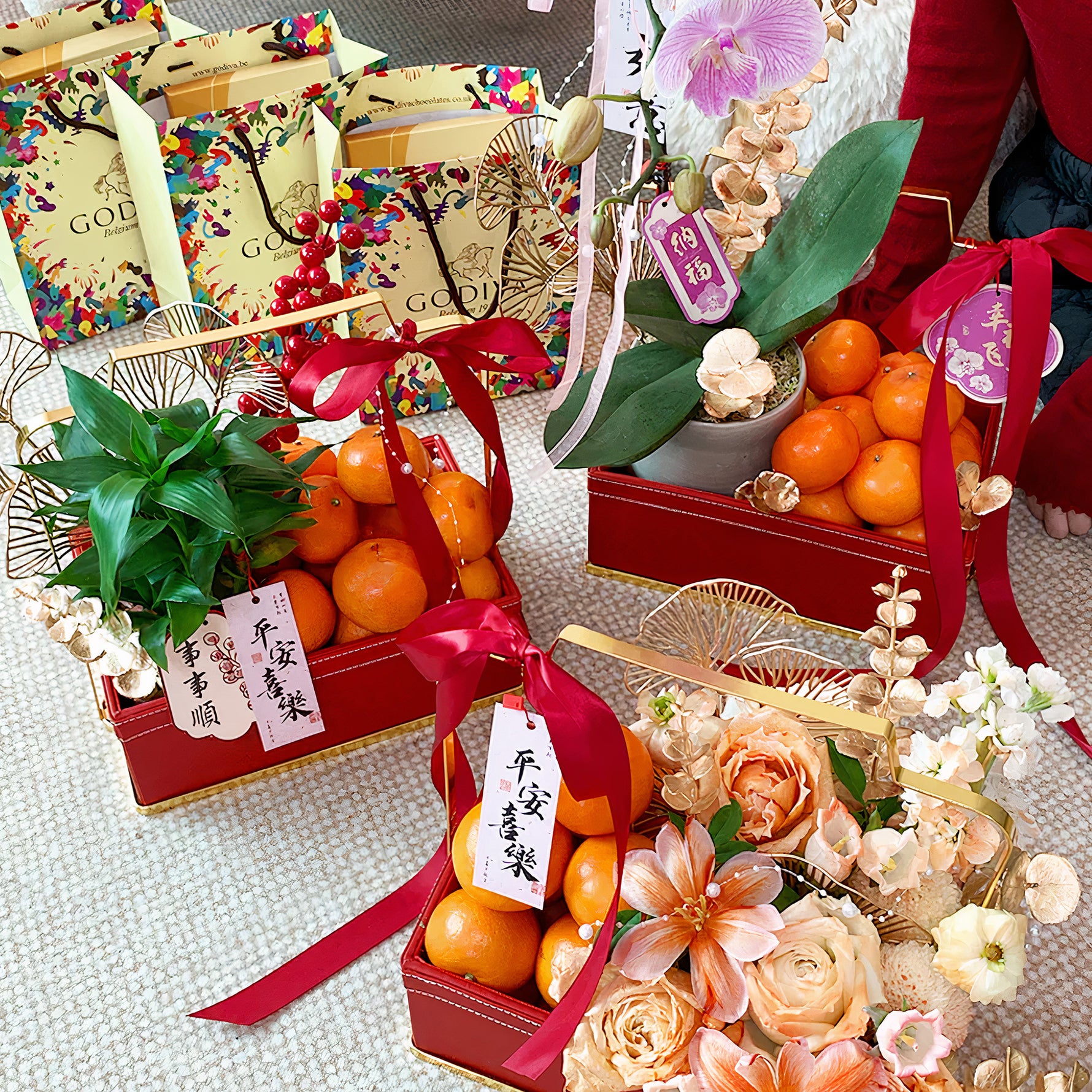 Perfect for family gatherings, valued clients, or anyone you wish prosperity and happiness in the festive season. Fresh blooms represent renewal and harmony, while the mandarin oranges convey wealth and success. A festive lucky tassel adds the finishing touch of blessing.